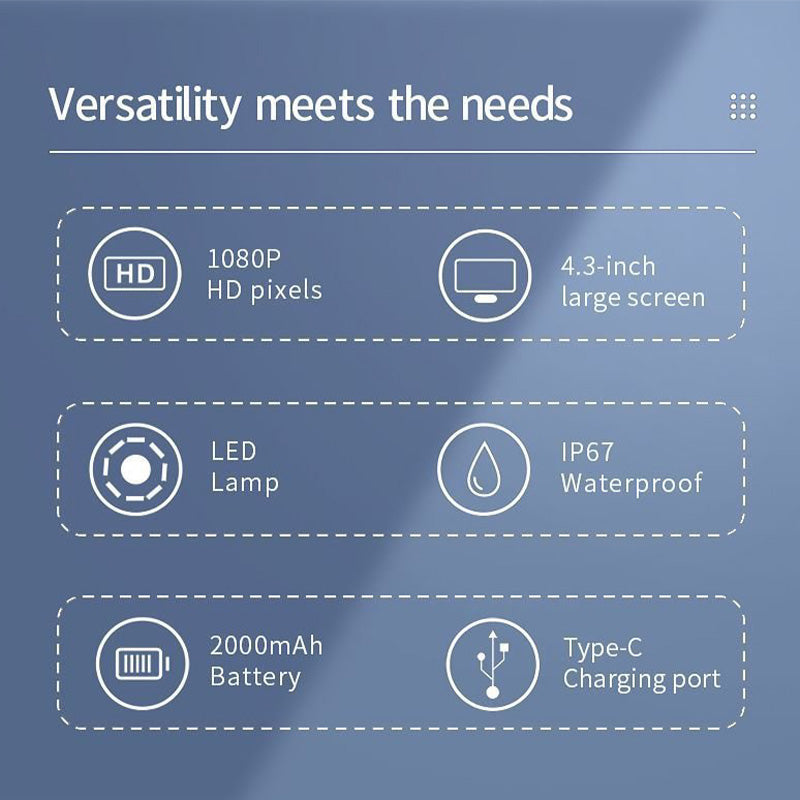 Unsere ScopeLite HD ist das ideale Werkzeug für präzise Inspektionen an schwer zugänglichen Stellen. Dieses tragbare Endoskop mit integriertem 4,3-Zoll-Bildschirm und HD-Kamera hilft Ihnen effizient bei der Fahrzeugwartung, Rohrsystemprüfung oder technischen Inspektionen. Kein Handy oder Zusatzgerät erforderlich – alles in einem kompakten Gerät enthalten.