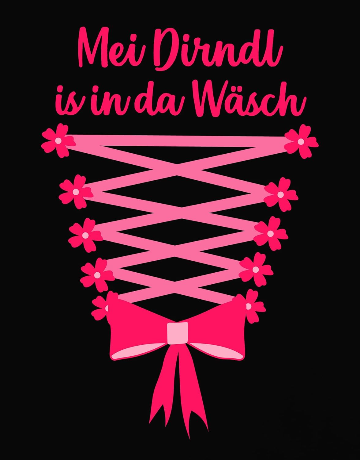 - Humorvolles Design: Witziger Print „Mei Dirndl is in da Wäsch“ im Dirndl-Look