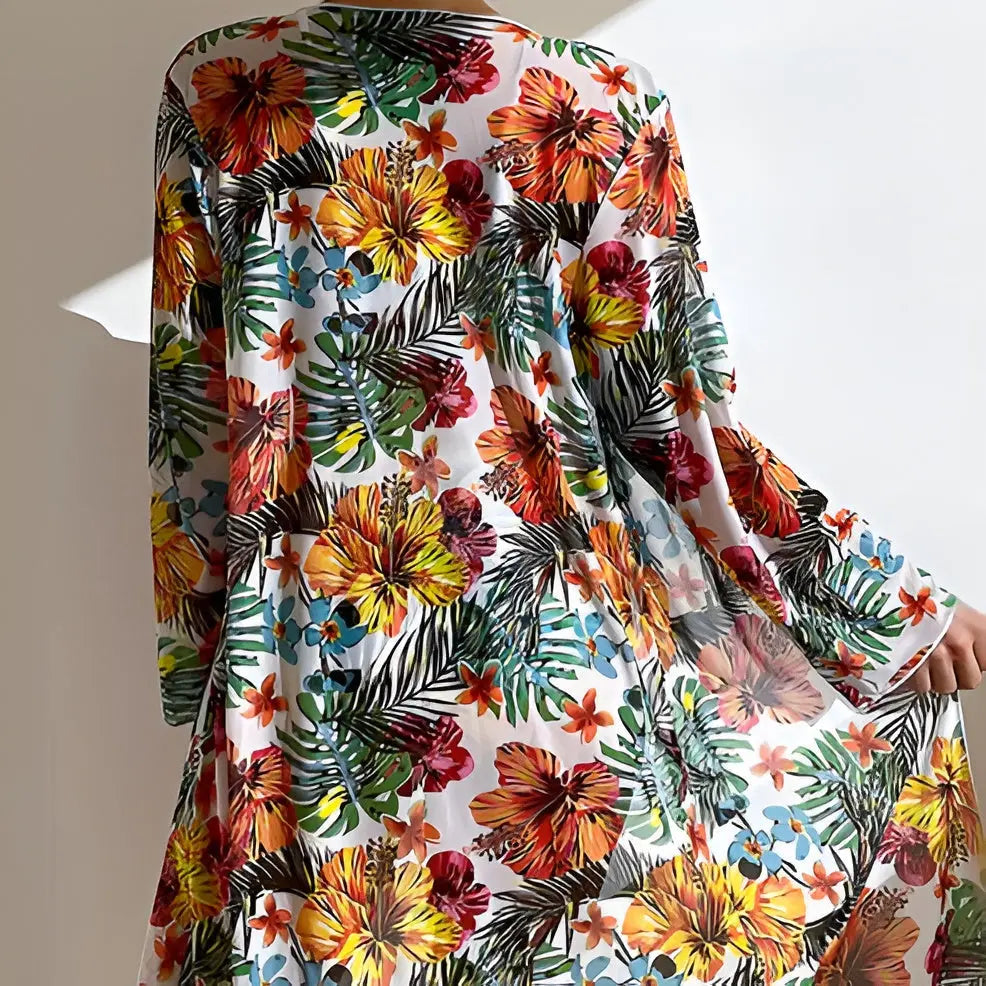 Das Bikini-Set Yara vereint femininen Schnitt mit auffälligem Design. Das hochgeschnittene Höschen betont deine Figur vorteilhaft, während der florale Druck Farbe und Persönlichkeit in deinen Look bringt. Der passende Überwurf rundet das Set ab und sorgt für einen stilvollen Übergang vom Wasser zum Beachwalk. Das weiche Material bietet ganztägigen Tragekomfort – ideal für heiße Tage am Meer oder Pool.