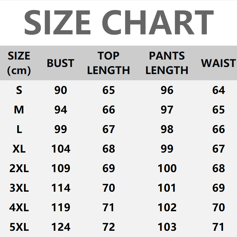 Größe | Brustumfang | Oberteillänge | Hosenlänge | Taillenumfang |