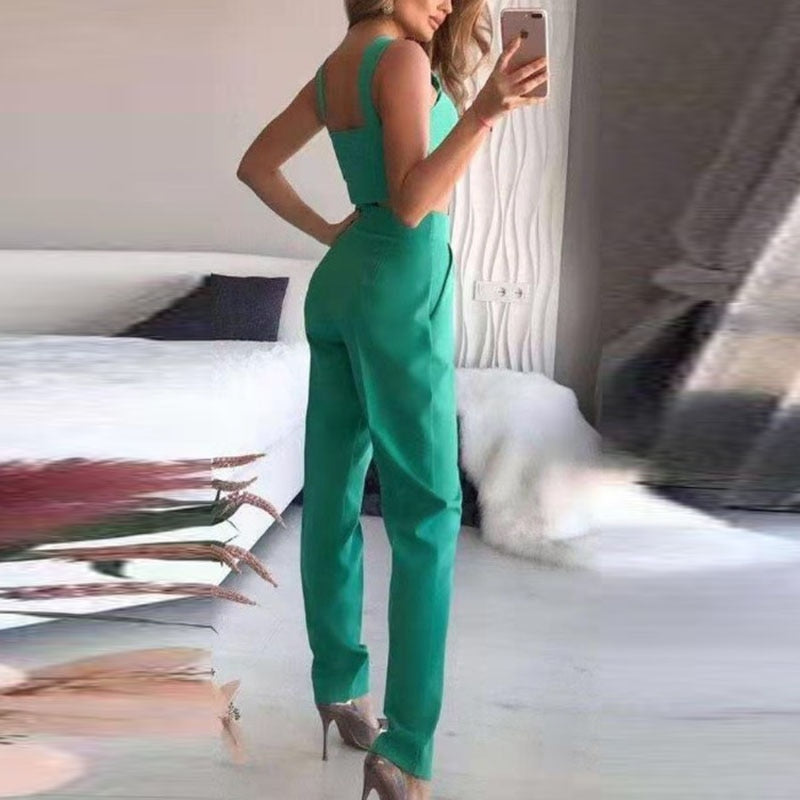 Mit diesem 3-teiligen Blazer-Set für Frauen sind Sie immer elegant gekleidet! Das Set besteht aus einem Blazer, einer Bluse und einer passenden Hose und ist perfekt für formelle Anlässe oder geschäftliche Meetings.