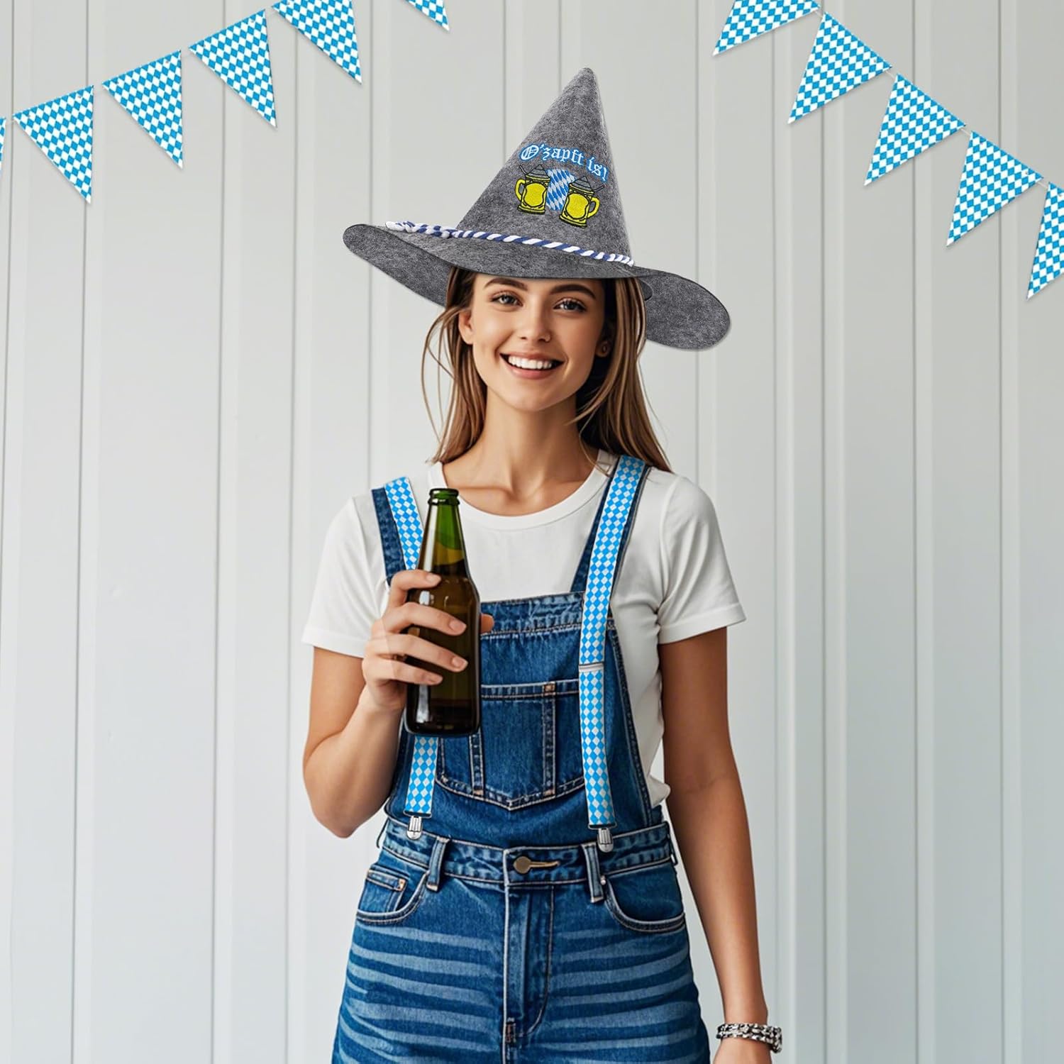 Das WiesnHeld Trachten-Set ist die ideale Ergänzung für dein perfektes Oktoberfest-Outfit. Es besteht aus einem grauen Filzhut mit aufgesticktem „O’zapft is!“-Motiv und einem Paar blau-weißer Hosenträger im traditionellen Rautenmuster. Zusammen verkörpern sie bayerisches Lebensgefühl pur und sind sowohl für Volksfeste als auch für Motto- und Karnevalspartys bestens geeignet. Einfach anziehen, und schon bist du bereit für die Wiesn-Gaudi!