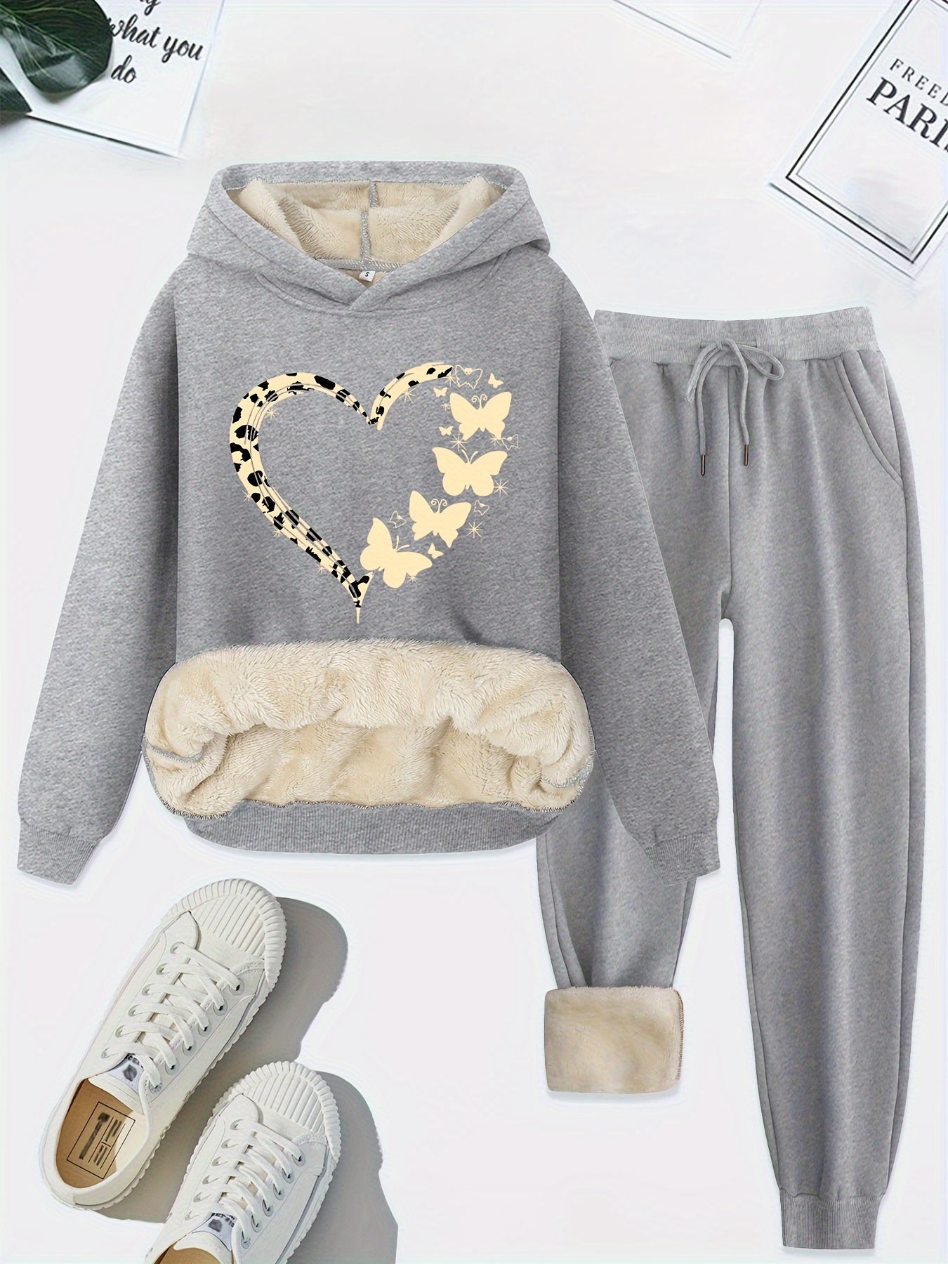 Entdecken Sie das warme Bella Set für Damen – eine perfekte Kombination aus Komfort und Stil für Herbst und Winter. Dieses Set besteht aus einem langärmeligen Hoodie mit Kordelzug und einer passenden Hose, beide aus weichem und warmem Material gefertigt. Der niedliche Herzprint verleiht diesem gemütlichen Outfit einen verspielten Touch, ideal sowohl für drinnen als auch für draußen.