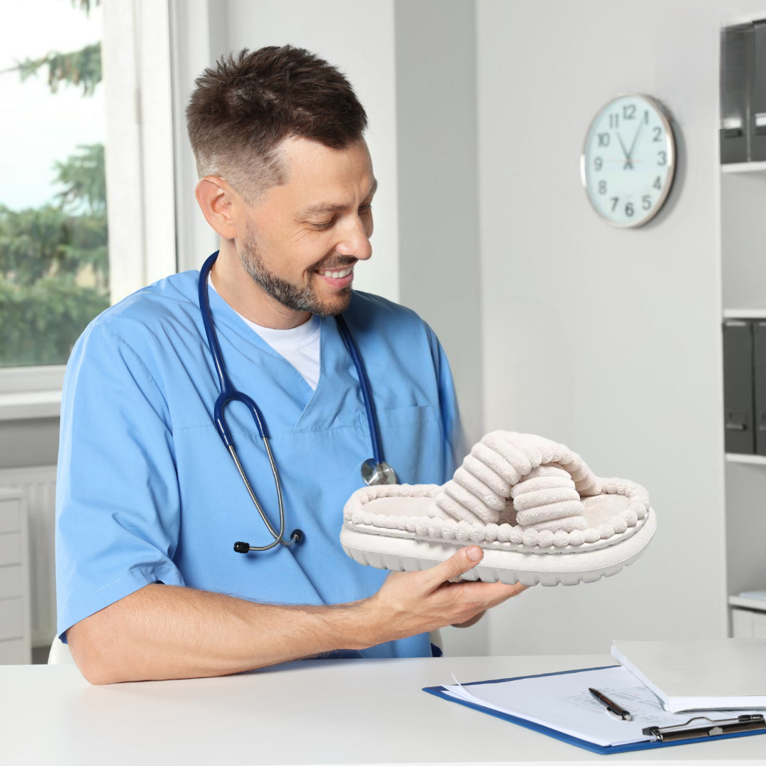 Mit Isabella holst du dir den Inbegriff von Komfort und Leichtigkeit in dein Zuhause. Diese orthopädischen Hausschuhe aus hochwertigem EVA-Material bieten eine weiche, wolkenähnliche Polsterung, die deine Füße bei jedem Schritt sanft umschließt. Die rutschfeste Sohle gibt dir Sicherheit auf allen Böden, während die wasserdichte Eigenschaft sie ideal für drinnen und kurze Wege nach draußen macht.