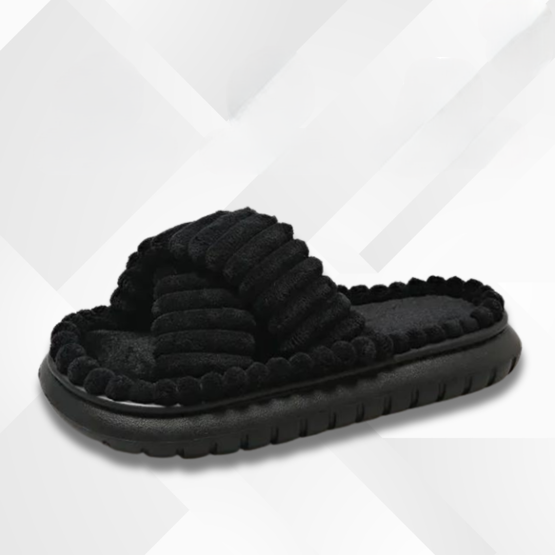 - Design: Offener Hausschuh mit gekreuzten Riemen