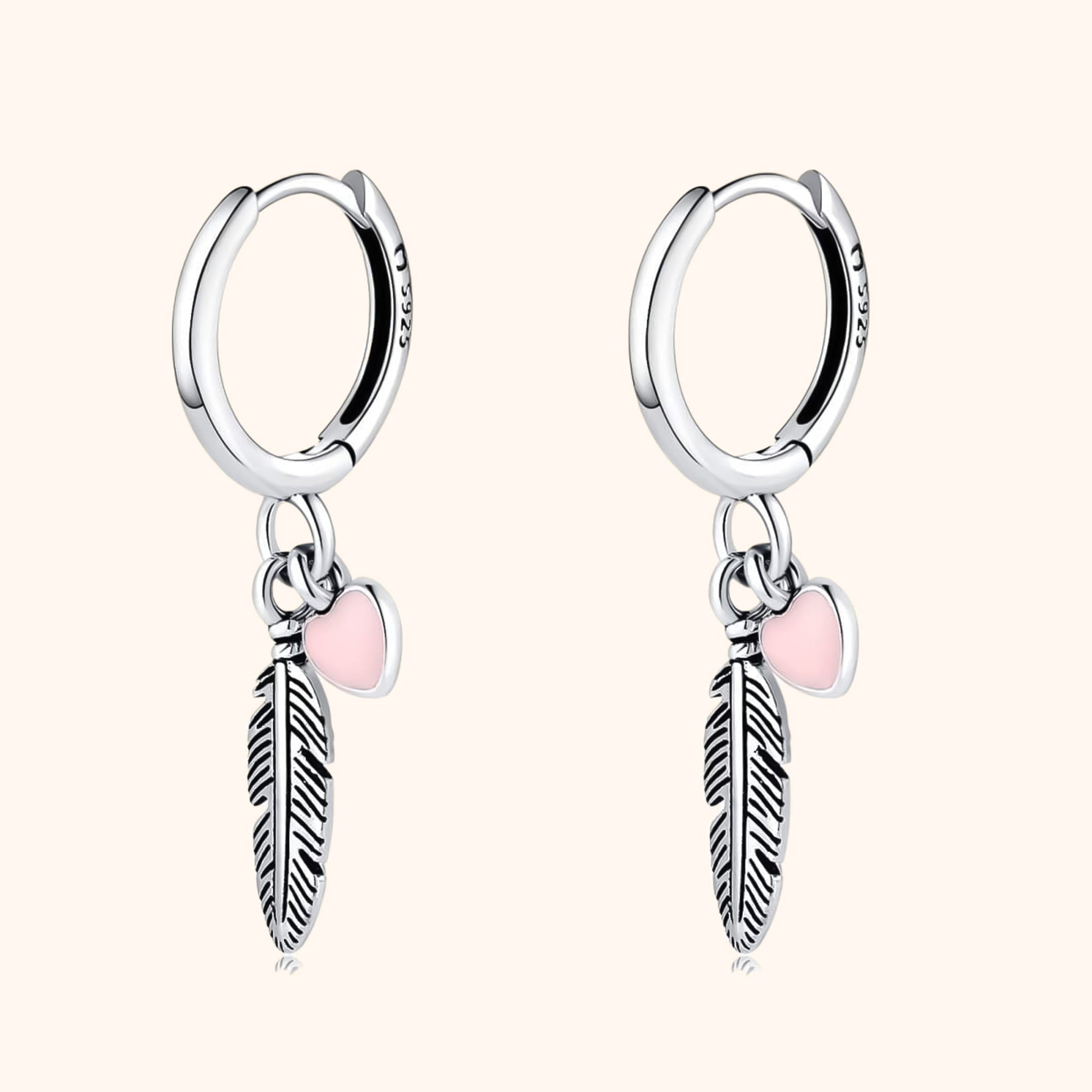 Unsere Althea Ohrringe vereinen zarte Symbolik mit eleganten Details. Diese wunderschönen Creolen sind mit einer stilvollen Feder und einem kleinen rosa Herz verziert, was ihnen eine romantische und sanfte Ausstrahlung verleiht. Gefertigt aus hochwertigem Sterling Silber, sind sie die perfekte Wahl für den Alltag oder besondere Anlässe.