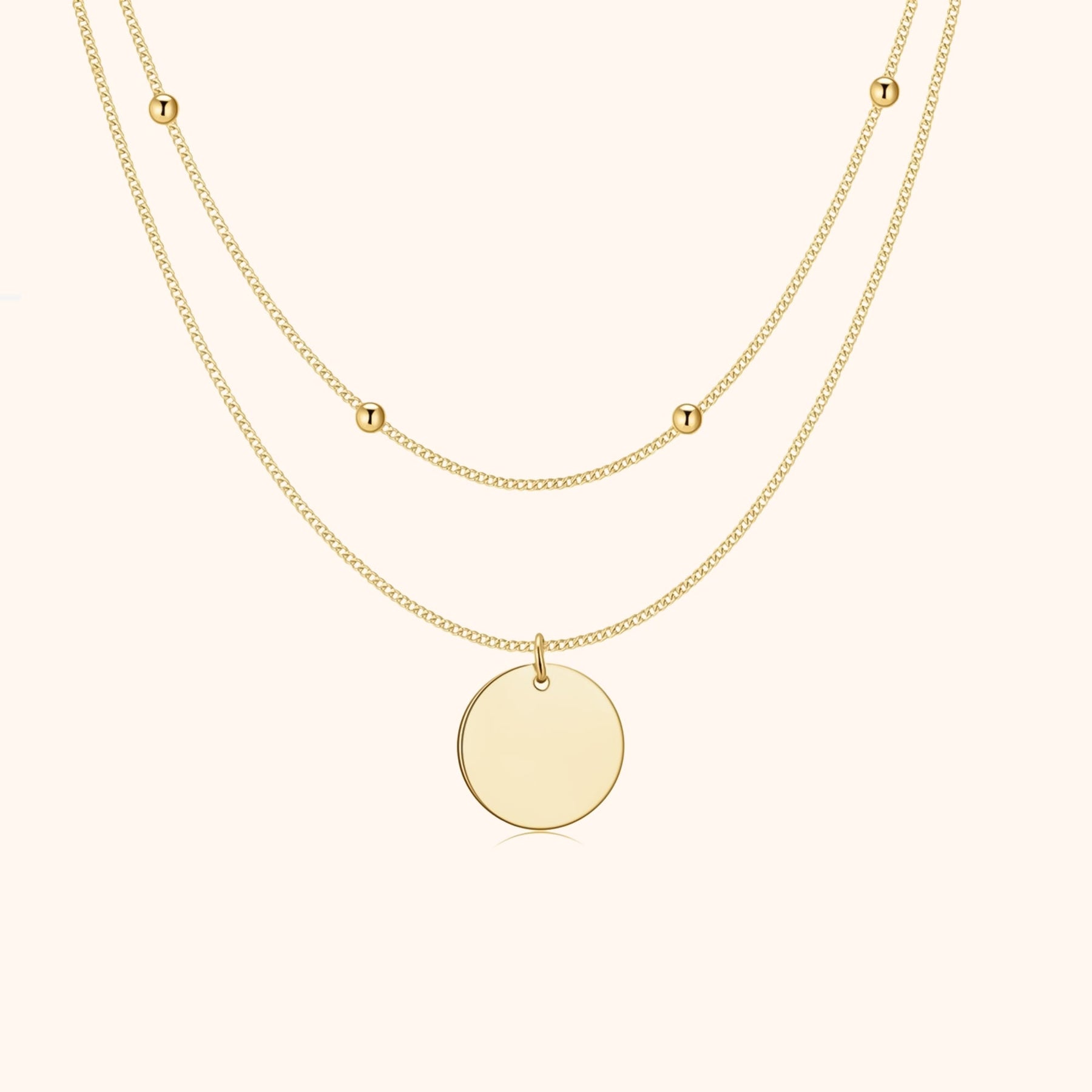 Unsere Amélie Doppel-Medaillonkette ist ein elegantes Schmuckstück mit zwei Lagen: eine Kette mit einem trendigen Medaillon und eine Kette mit feinen Kugeln. Gefertigt aus hochwertigem Sterling-Silber und erhältlich in Silber oder mit einer 18K vergoldeten Beschichtung, bietet diese Kette einen stilvollen und vielseitigen Look. Die verstellbare Länge macht sie perfekt für jede Gelegenheit.