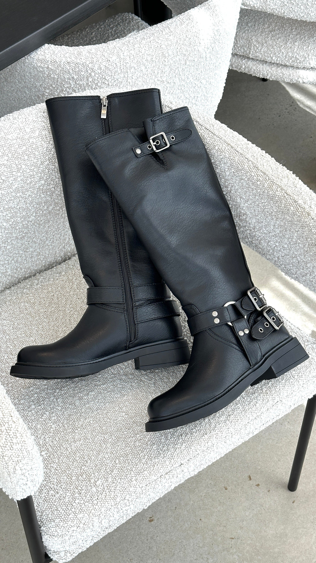 - Hochstrukturiertes Design: Elegantes Obermaterial, das knapp unter das Knie reicht, für zusätzlichen Stil.