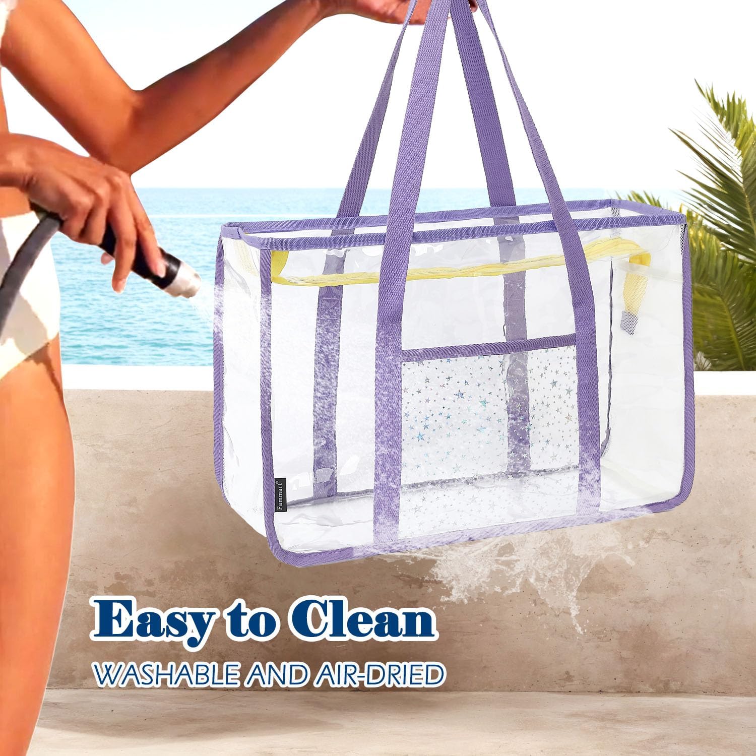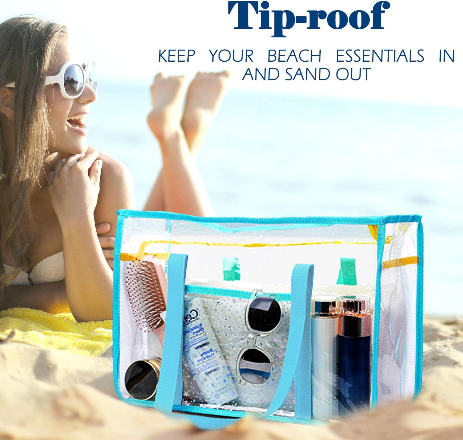 Kaufe 1, Erhalte 1 GRATIS – Extra Große Durchsichtige Mesh-Strandtasche mit 8 Taschen – ClearWave