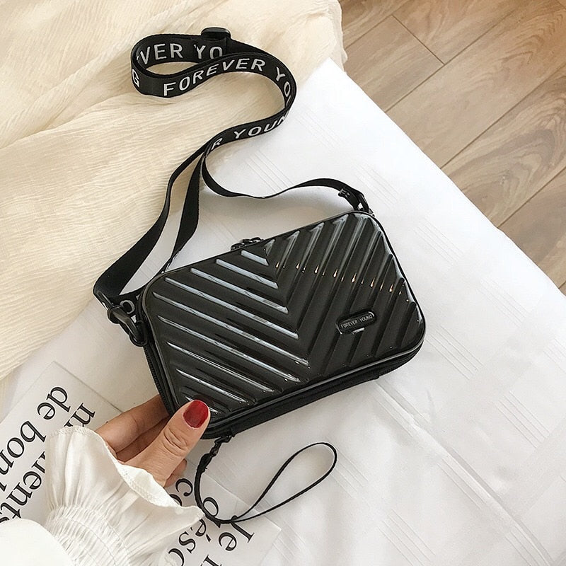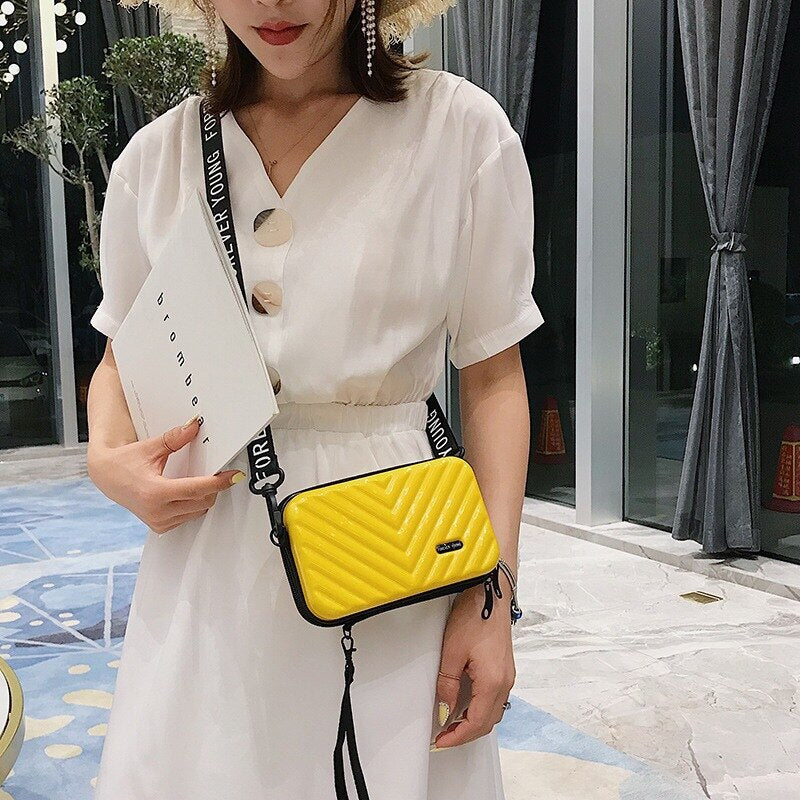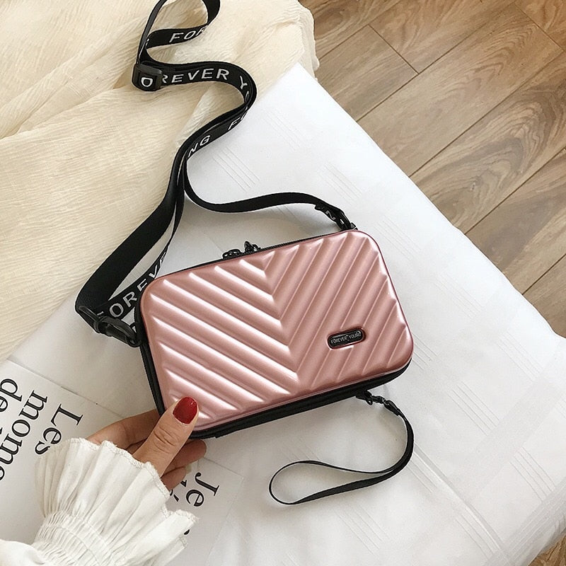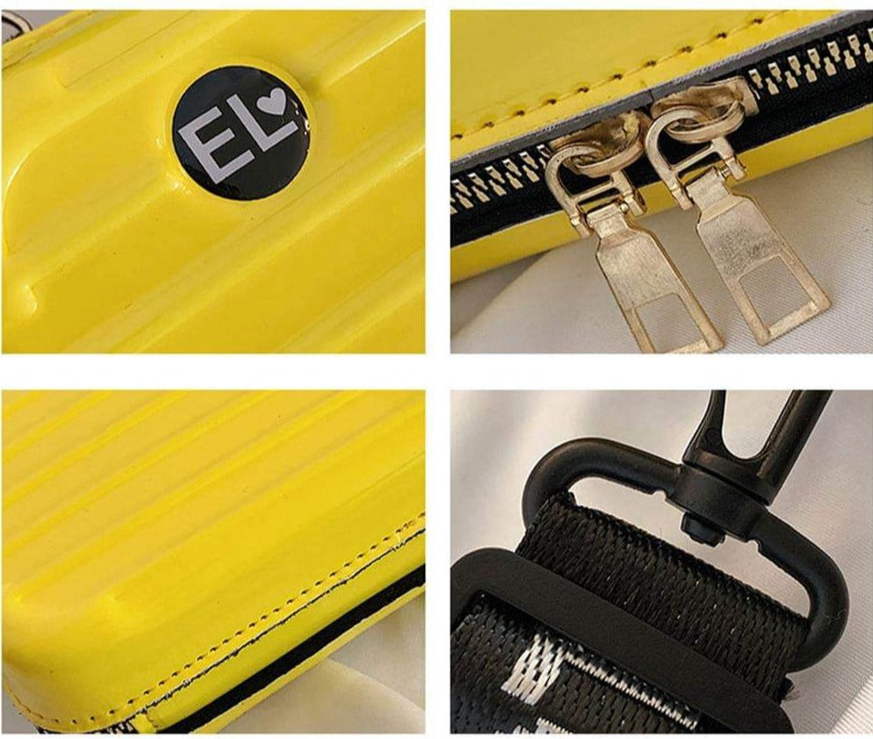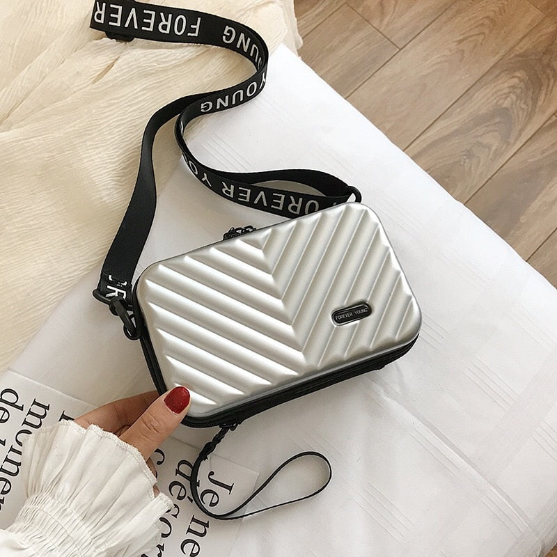 Mit ihrem einzigartigen rechteckigen Design und den vielseitigen Tragegurten kann dieser Mini-Koffer crossbody, in der Hand oder als Handgelenkstasche getragen werden. Gefertigt aus strapazierfähigem, wasserdichtem PVC schützt sie deine Habseligkeiten vor Kratzern, Stößen und Feuchtigkeit. Die inneren Mesh-Fächer halten deine Sachen ordentlich, was sie zur idealen Wahl für Reisen, Arbeit oder entspannte Tage unterwegs macht.