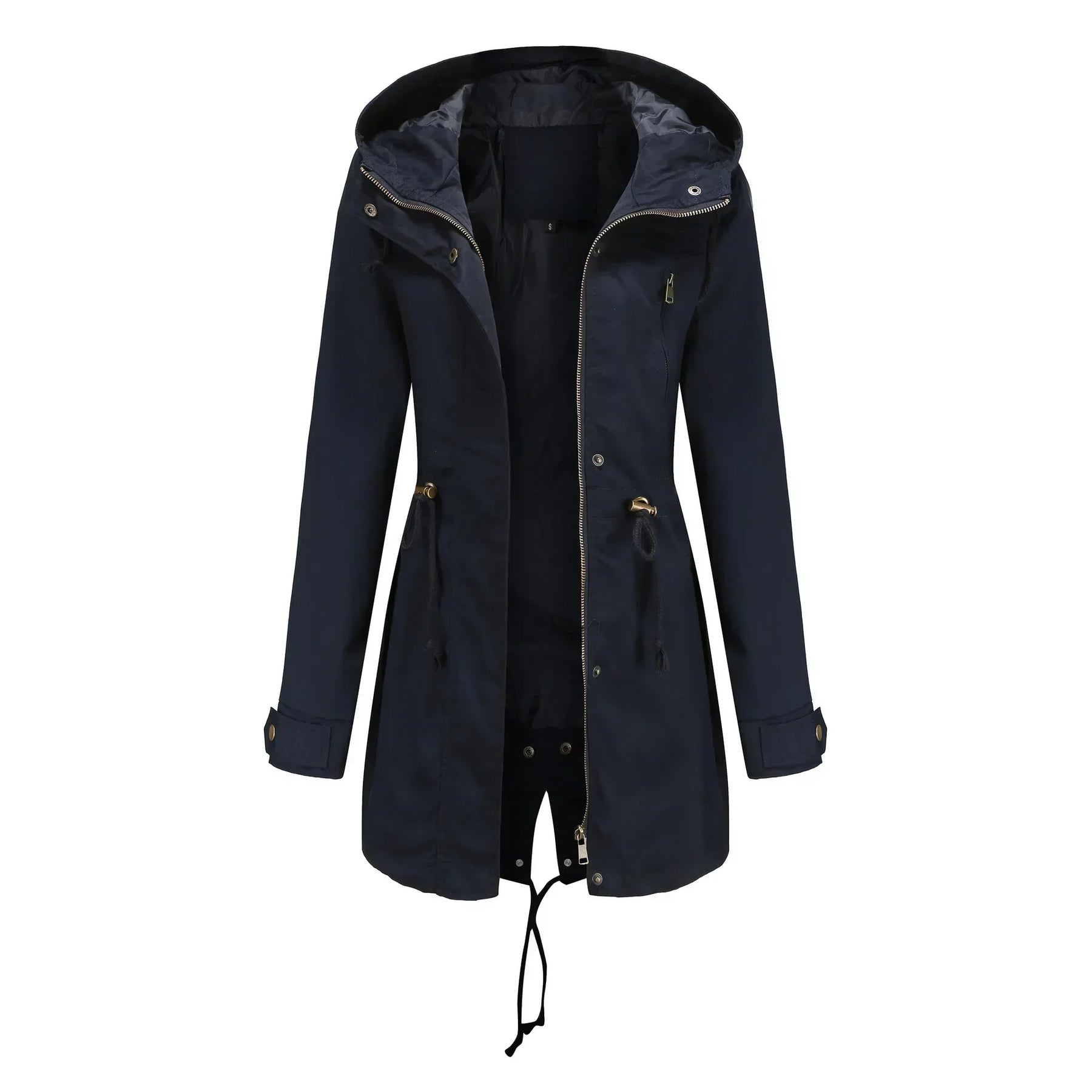 Mit der Marielle bist du perfekt für kühle Tage in der Übergangszeit ausgestattet. Das leichte, aber wärmende Material sorgt für angenehmen Komfort, während das zeitlose Design vielseitig kombinierbar ist. Die verstellbare Taille bringt Form in den Look, und die Kapuze schützt dich zuverlässig bei Wind und leichtem Regen. Ob beim Stadtbummel, im Park oder auf dem Weg zur Arbeit – die Marielle ist dein treuer Begleiter in Herbst und Frühling.