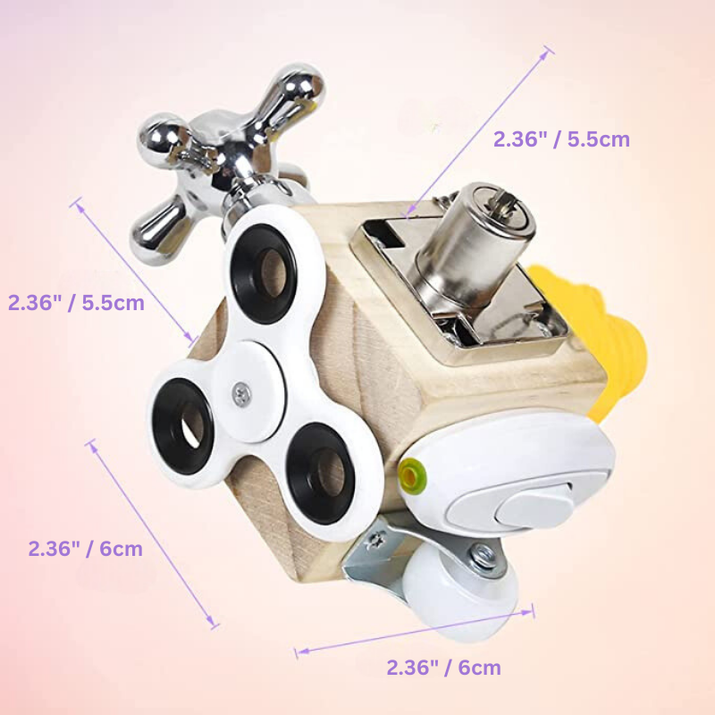 Mit Sorgfalt und Liebe zum Detail gestaltet, bietet dieser besondere Aktivitätskubus eine fesselnde, interaktive Spielerfahrung, die dein Kind begeistert und gleichzeitig hilft, wichtige Fähigkeiten zu entwickeln. Beobachte, wie ihre Augen leuchten, wenn sie die vielen aufregenden Funktionen des AbenteuerKubus entdecken.