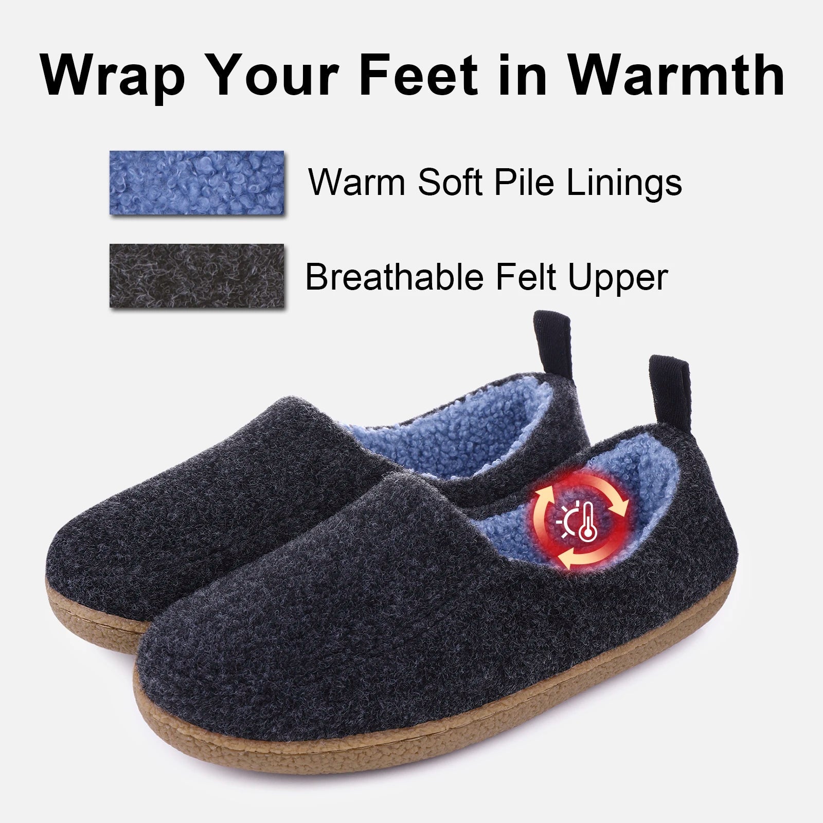 Mit unseren Decotic™ Filzhausschuhen haben Sie einen gemütlichen Winter! Die dicke, flexible Sohle sorgt für ein wolkenähnliches Erlebnis und die rutschfeste Sohle sorgt für Sicherheit. Das weiche Futter sorgt dafür, dass Ihre Füße zu jeder Tageszeit angenehm warm bleiben. Die Decotic™ Filzpantoffeln sind in 5 Größen und 4 trendigen Farben erhältlich.