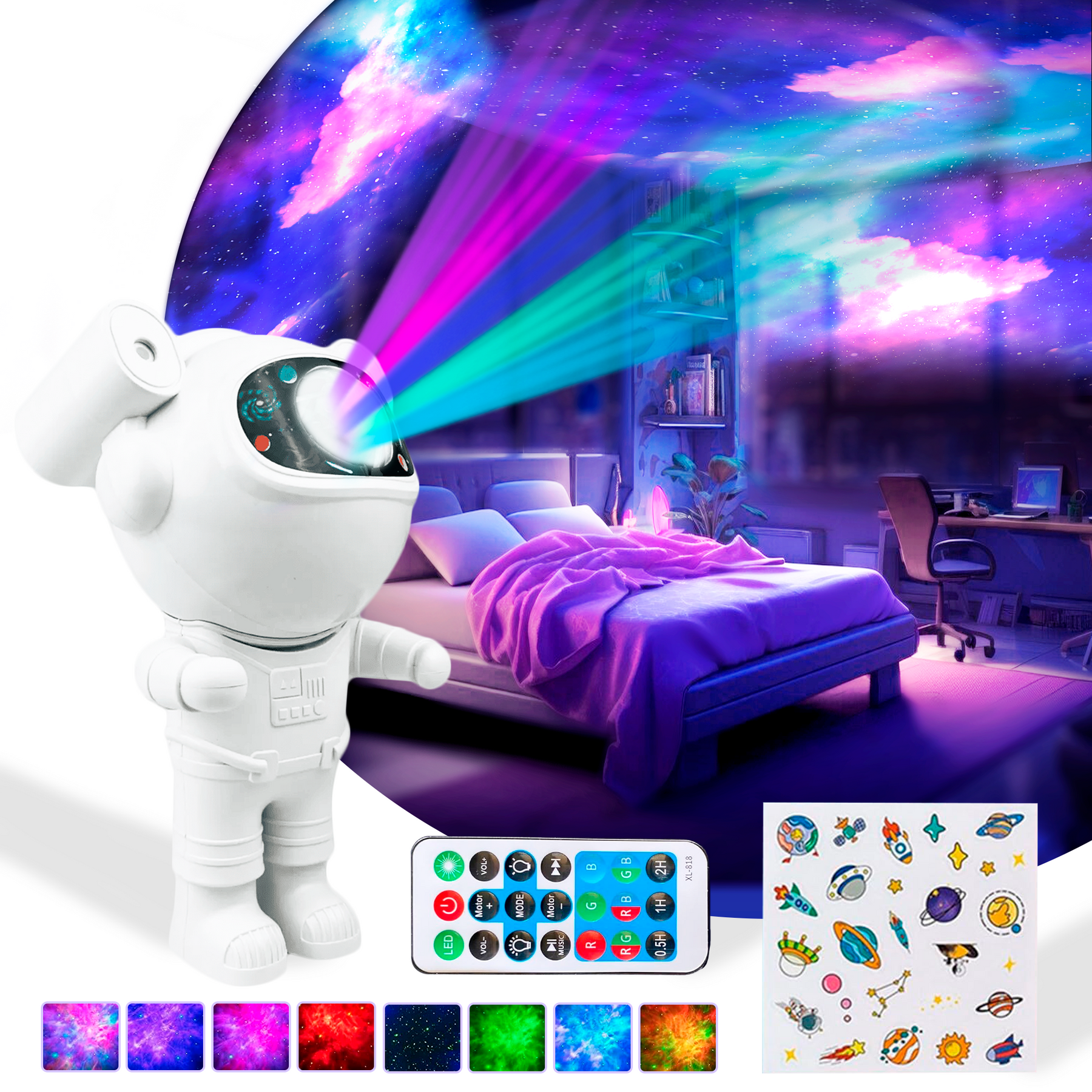 Mit 8 romantischen Nebeleffekten und der Fähigkeit, Sterne an Wände oder Decke zu projizieren, schafft dieser Projektor eine ruhige, entspannende Atmosphäre und versetzt dich mitten in die Milchstraße. Du wirst dich fühlen wie ein Astronaut, der das Universum erkundet.