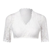 Die Dirndlbluse Lucy vereint bayerischen Stil mit moderner Eleganz und präsentiert einen schicken V-Ausschnitt sowie zarte Spitzenverzierungen, perfekt für das Oktoberfest. Dieses Crop-Top verleiht jedem Oktoberfestoutfit einen stilvollen Look und schmeichelhafte Figur.
