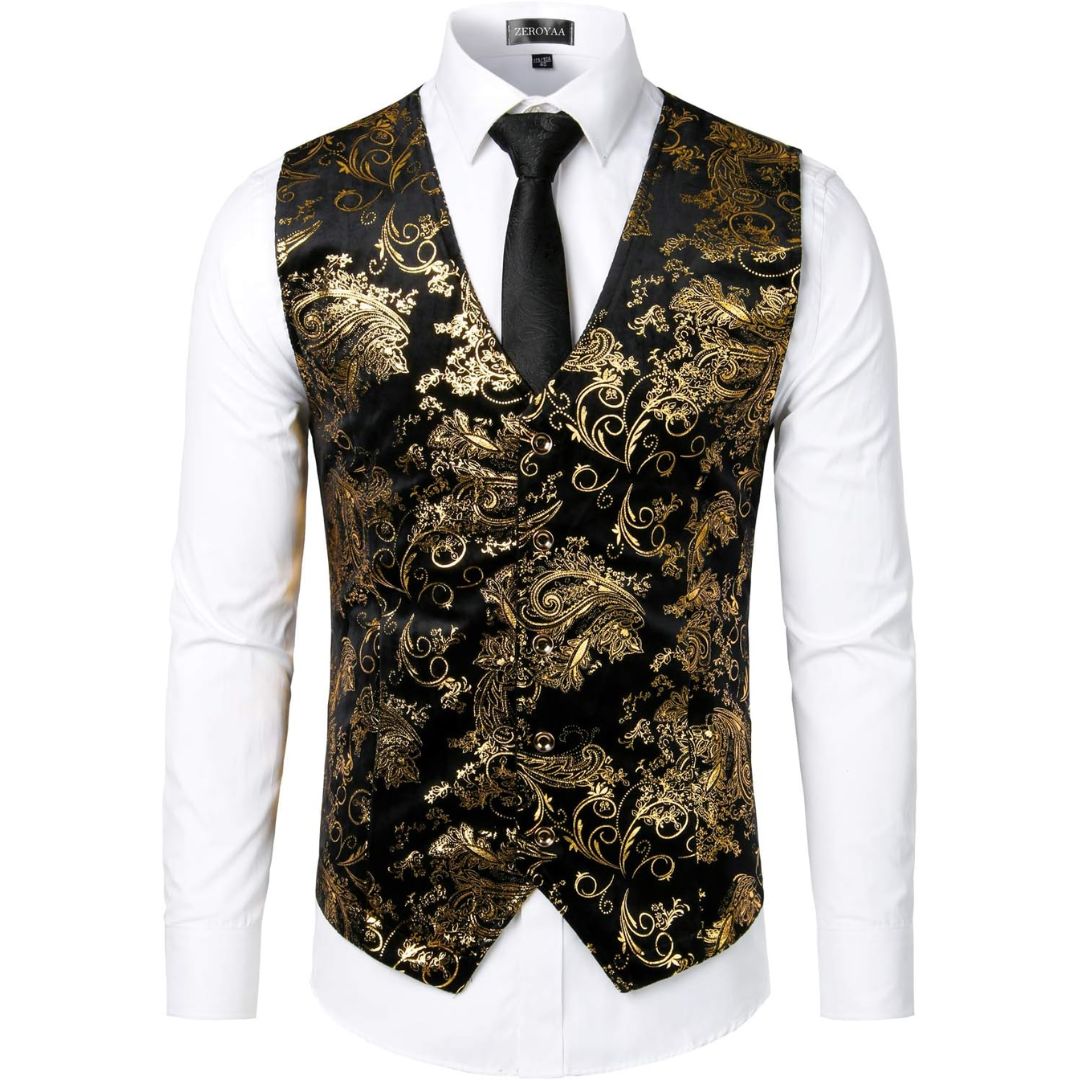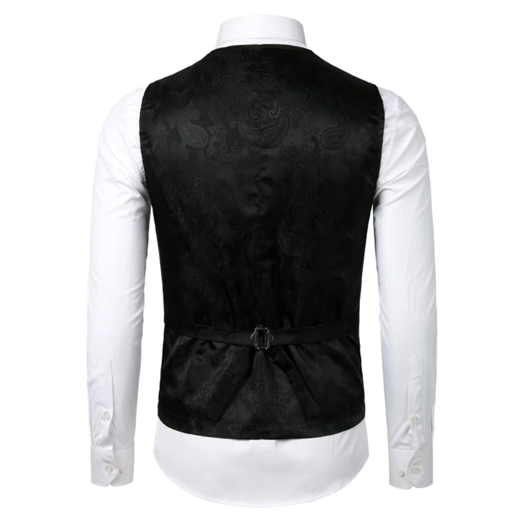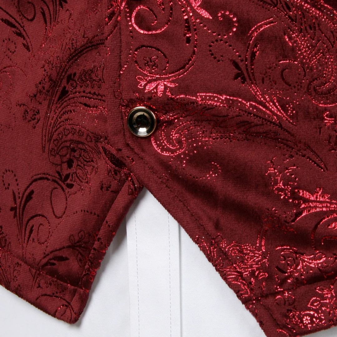 Die traditionelle Weste Franco zeigt ein faszinierendes Spiel aus Paisleymustern und Bronzierung, das Ihrem Outfit einen Hauch von Gothic- und Steampunk-Look verleiht.