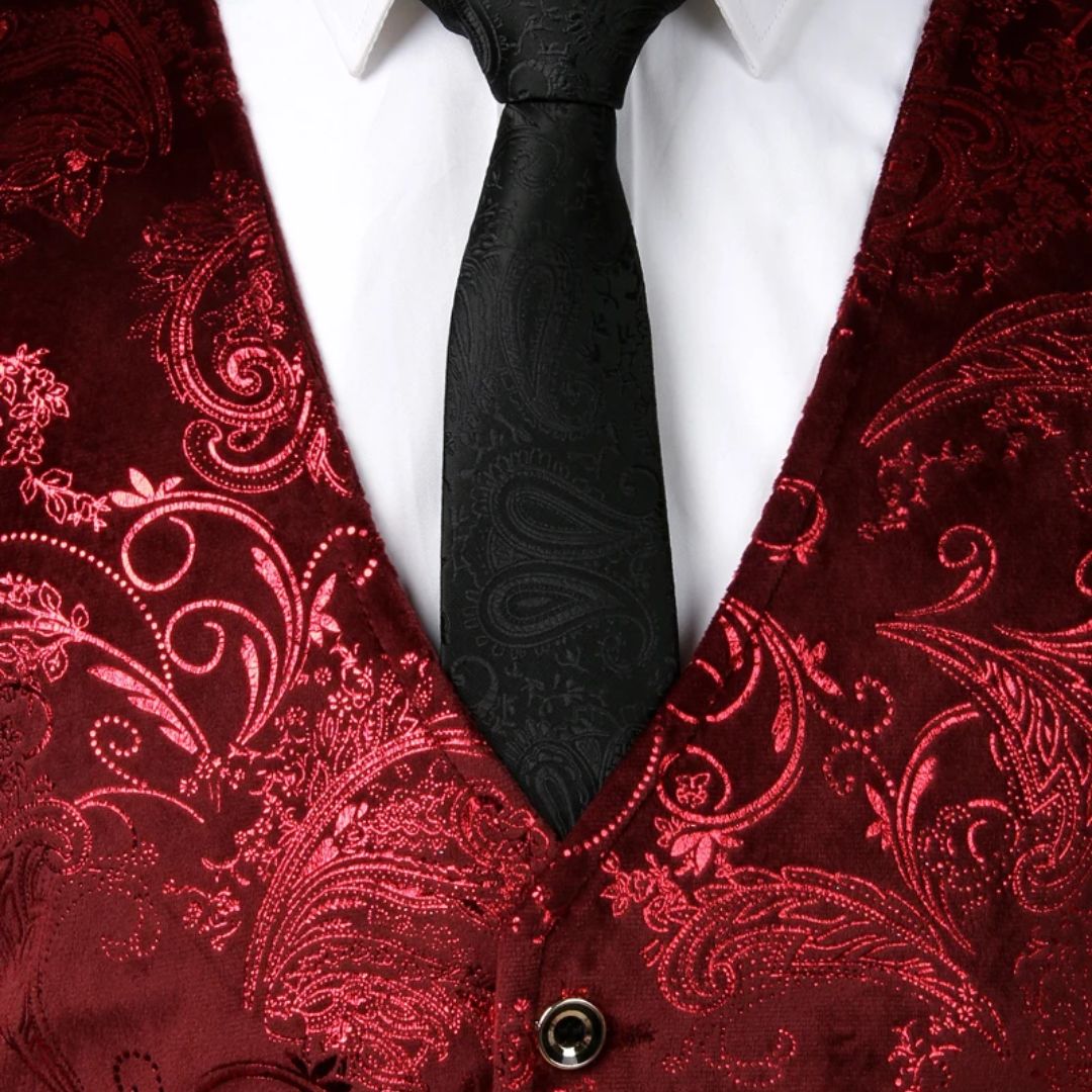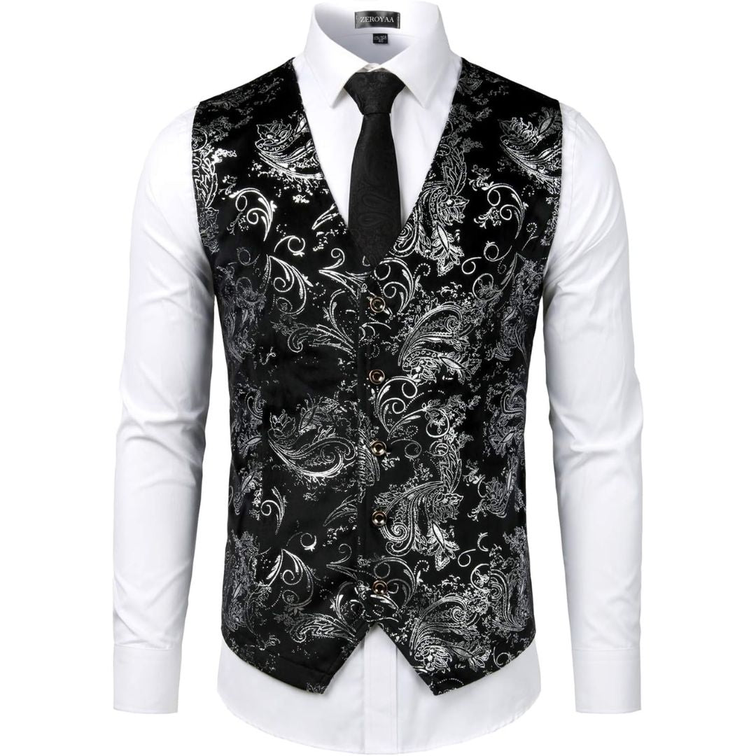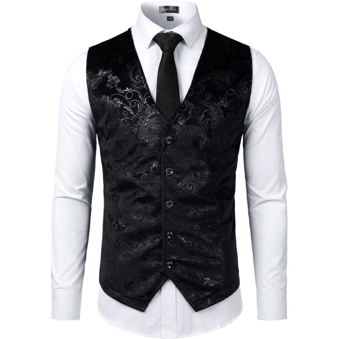 Die traditionelle Weste Franco zeigt ein faszinierendes Spiel aus Paisleymustern und Bronzierung, das Ihrem Outfit einen Hauch von Gothic- und Steampunk-Look verleiht.