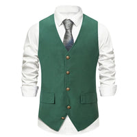 Die traditionelle Weste Miguel, aus Wildleder in einem Vintage-Grün gefertigt, verkörpert den Geist des Mittelalters und des Steampunk mit ihrer schmalen Passform und der ärmellosen Silhouette.