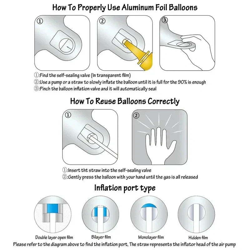 - Wiederverwendbar: Folienballons lassen sich mehrfach befüllen