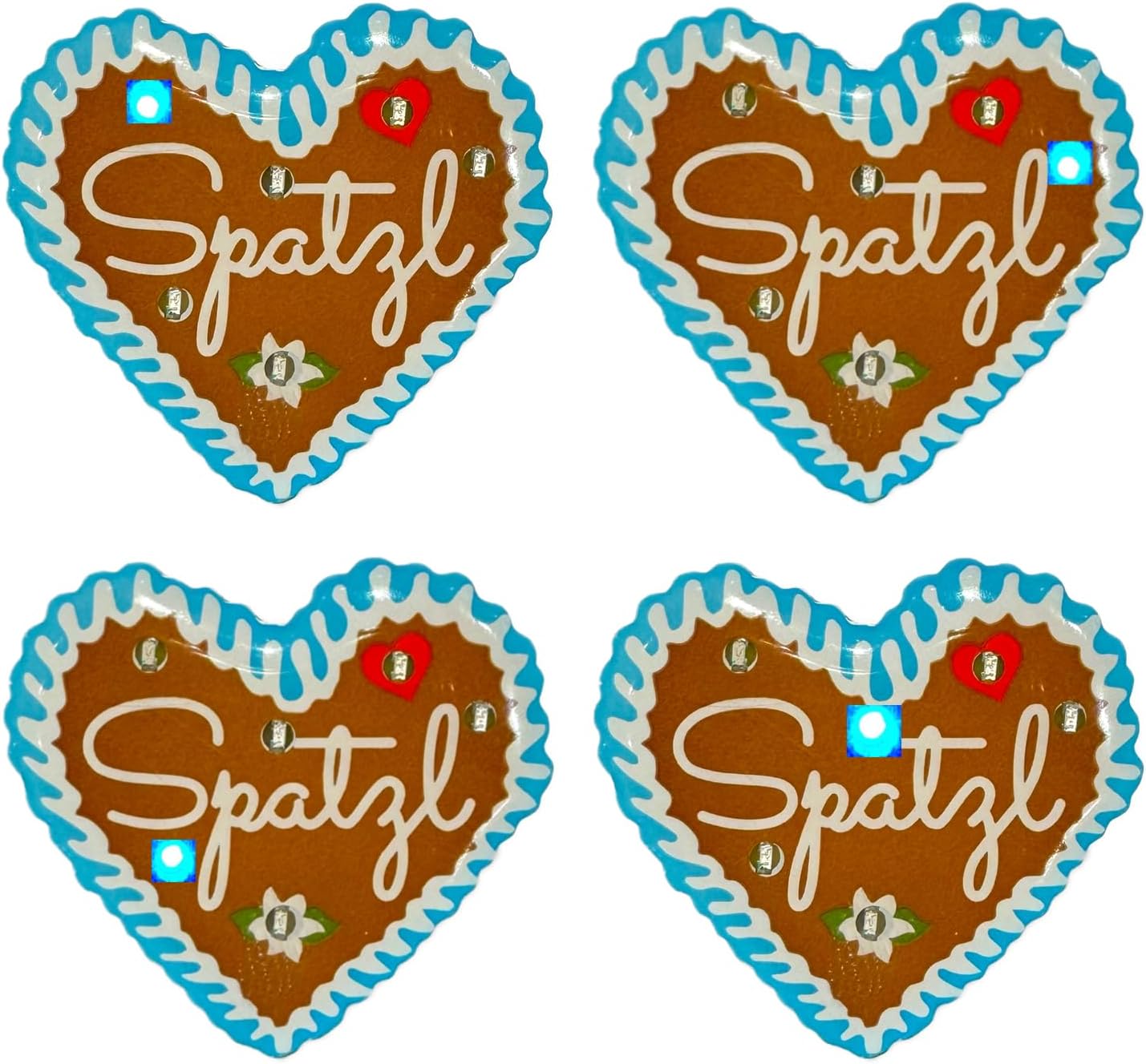 Die HerzGaudi Pins sind das perfekte Accessoire für jede Wiesn-Feier. Im traditionellen Lebkuchenherz-Design mit der Aufschrift Spatzl bringen sie echtes Oktoberfest-Feeling an dein Outfit. Dank der integrierten LEDs leuchten die Herzen blau und blinken abwechselnd – ein echter Hingucker auf Partys, Hochzeiten oder im Festzelt.
