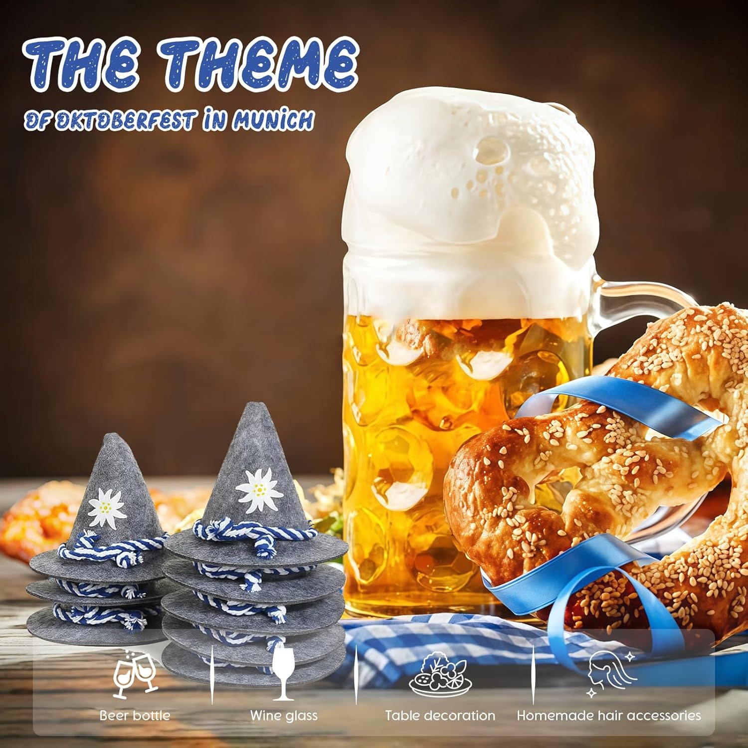 Mini-Trachtenhüte aus Filz im 12er-Set – EdelweißMini Oktoberfest 2025