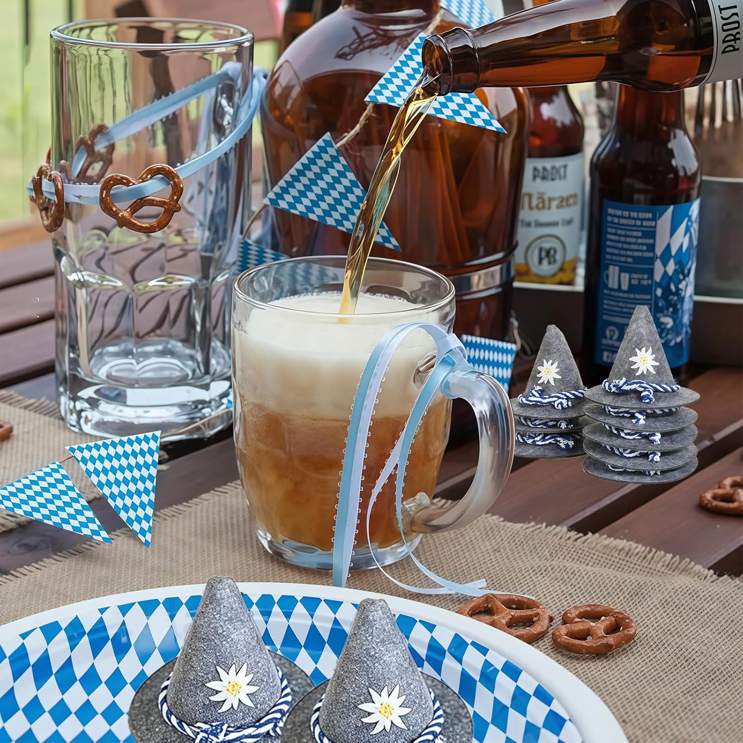 Die EdelweißMini Trachtenhüte sind die perfekte Deko-Idee für dein Oktoberfest. Mit ihrem traditionellen Design, der blauen Kordel und dem Edelweiß-Motiv bringen sie sofort bayerisches Flair auf den Tisch. Ob als Tischkonfetti, Flaschendeko oder witziges Accessoire für Haustiere – diese kleinen Hüte sind vielseitig einsetzbar und sorgen für staunende Blicke bei jeder Feier. Dank hochwertigem Filz sind sie formstabil, langlebig und wiederverwendbar.
