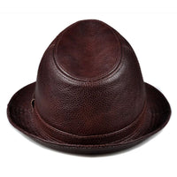 Der Trachtenhut James ist eine hochwertige Jazz-Fedora aus echtem Leder für Gentlemen mit kurzer Krempe in Schwarz oder Braun. Hergestellt aus hochwertigem Rindsleder, verleiht sie jedem Ensemble einen Hauch von Eleganz und Stil.