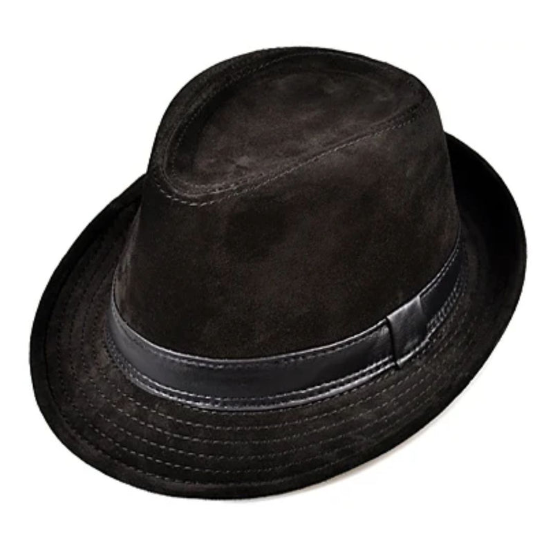 Der Trachtenhut Jeremiah ist ein echter Lederhut im britischen Gentleman-Stil mit breitem Rand und Stetson-Fedora. Erhältlich in den Größen 55-60cm für eine passgenaue Passform.