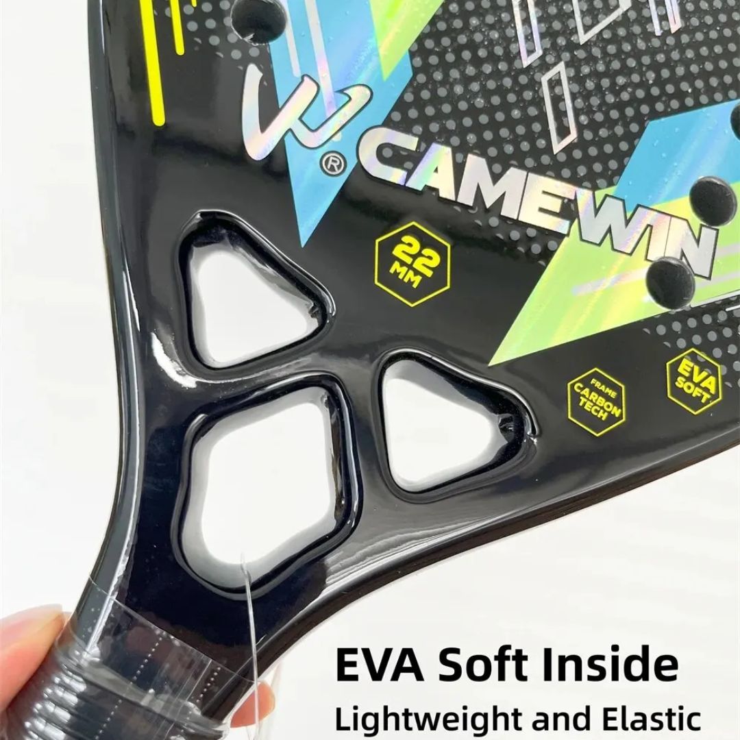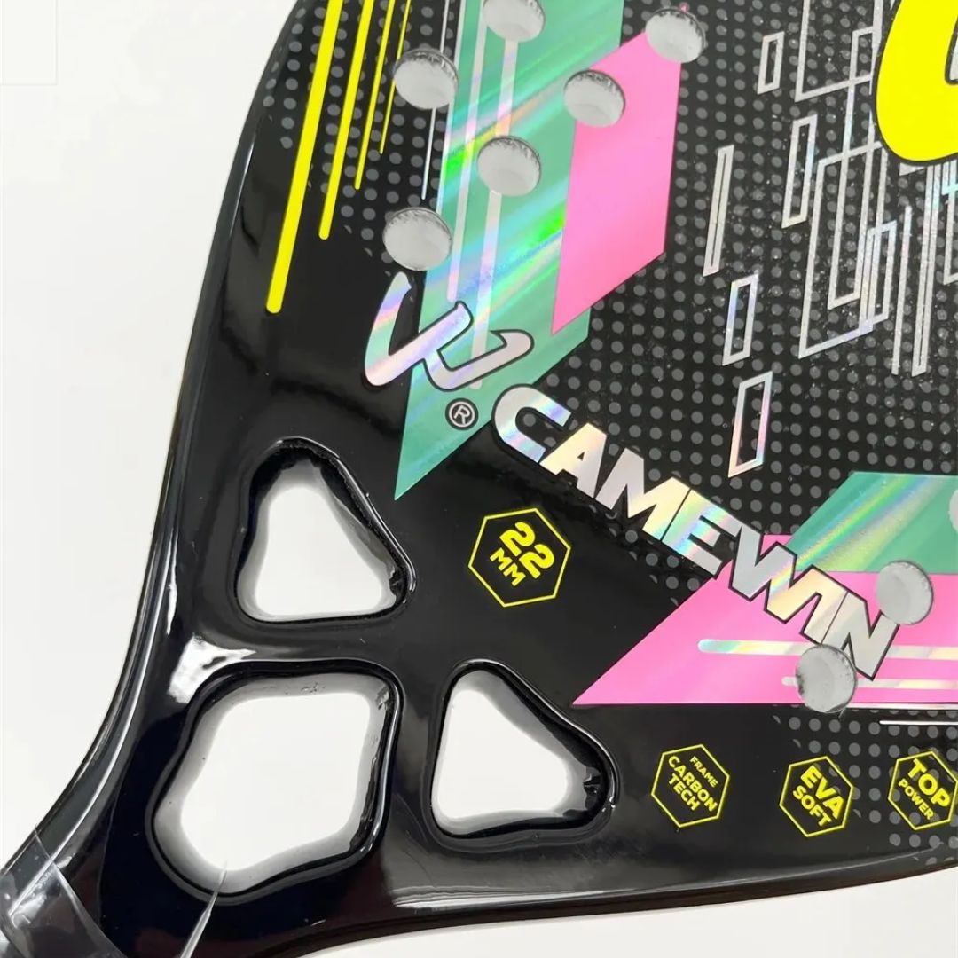 Der Cameron Padel Schläger besteht aus Vollcarbonfasern und verfügt über eine raue Oberfläche sowie eine Zwischenschicht aus EVA-Schaum in der Mitte. Diese Konstruktion bietet eine optimale Balance zwischen Kraft und Kontrolle auf dem Platz. Ideal für Spieler, die Präzision und Leistung schätzen.