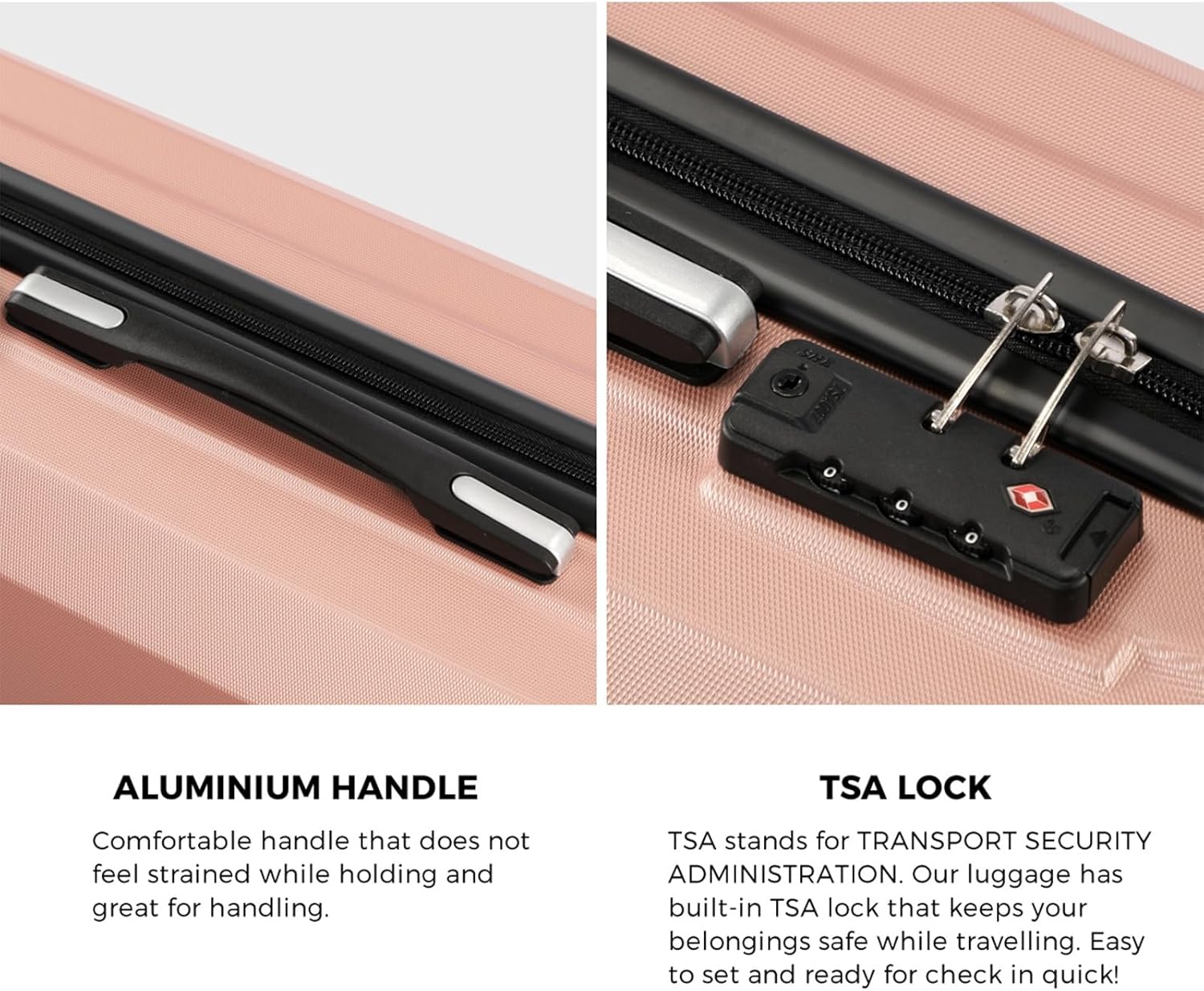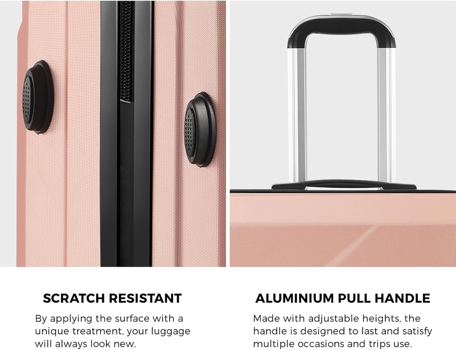 Dieses Set enthält einen 50 cm Hartschalen-Kabinenkoffer und eine passende 30 cm Trolley-Tasche, ideal für Wochenendausflüge oder als Handgepäck. Hergestellt aus robustem ABS mit einem Aluminiumgriff, ist die Struktur stoßfest und dennoch leicht. Das integrierte Zahlenschloss schützt Ihr Eigentum, und die 360°-Drehrollen sorgen für müheloses Bewegen durch Terminals. Die Trolley-Tasche verfügt über einen weichen oberen Tragegriff und lässt sich sauber über den Griff des Koffers schieben, um einfaches Stapeln zu ermöglichen.