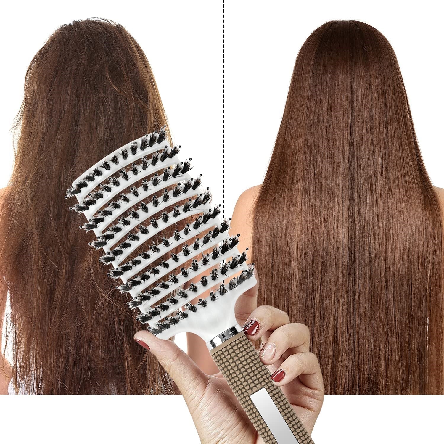 Die Anti-Tangle-Bürste ist die Lösung für schmerzfreies Entwirren und reduziert Haarschäden. Egal ob für Kinder mit zerzaustem Haar oder für alle Haartypen geeignet, dieses Produkt wird Ihnen helfen, Ihre Haare mühelos zu entwirren. Der innovative Bürstenkopf besteht aus einer Kombination von Wildschweinborsten und Nylonspitzen, die sanft über verfilztes und nasses Haar gleiten, ohne dabei unangenehm zu sein. Das belüftete Design ermöglicht zudem einen maximalen Luftstrom, der Ihr Haar schneller trocknen lässt.