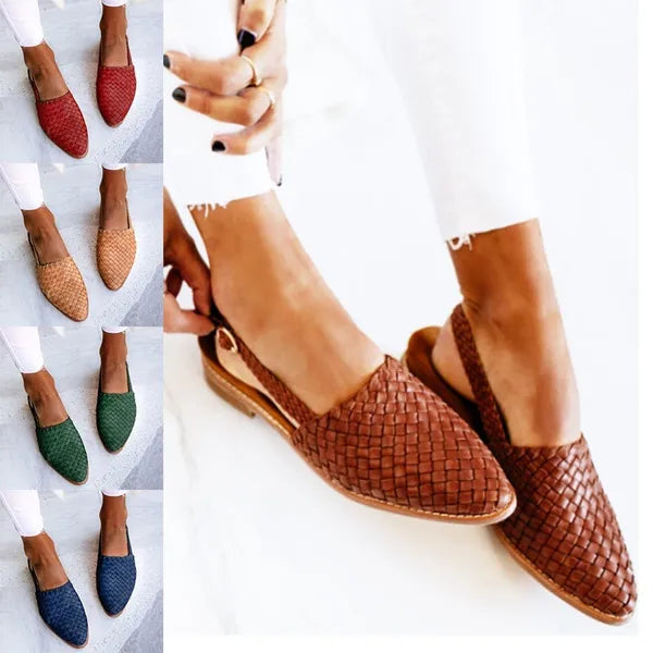 Entdecke den zeitlosen Reiz der Lia Geflochtenen Leder Damen Sandalen. Gefertigt aus hochwertigem geflochtenem Leder und ausgestattet mit einer eleganten mandelförmigen Spitze, vereinen diese Sandalen klassischen Stil mit moderner Note.