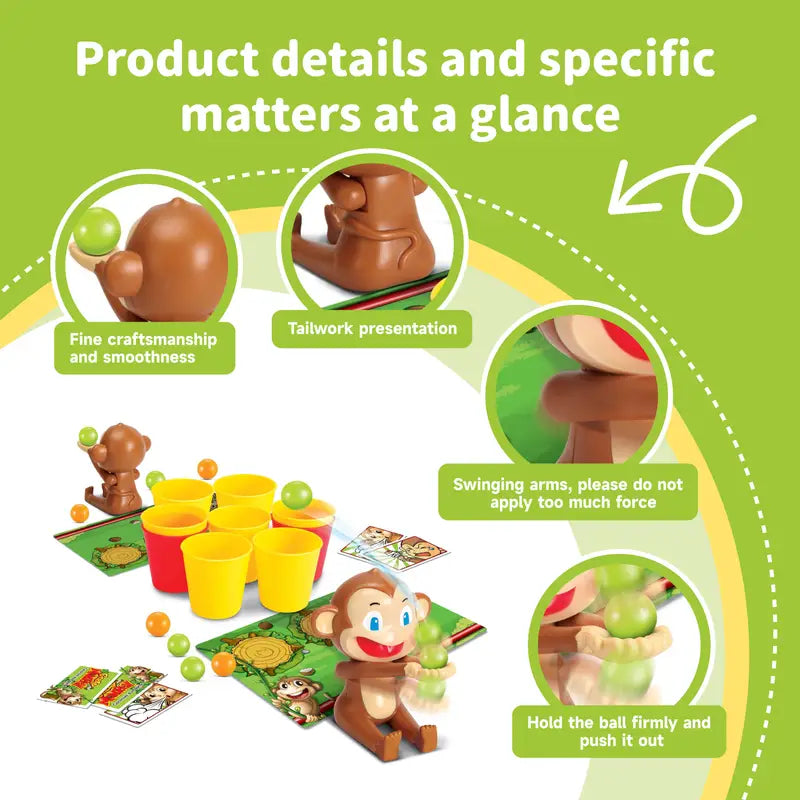 Bringe Action und Spaß in eure Familienabende mit MonkeyBlast, dem spannenden Brettspiel, bei dem schnelle Reflexe und Strategie aufeinandertreffen. In diesem Zwei-Personen-Battle-Spiel testen die Spieler ihre Schießfähigkeiten, während sie versuchen, mit lustigen schießenden Äffchen die meisten Punkte zu erzielen. Ideal für Familien, Geburtstage oder Feiertage – MonkeyBlast garantiert endlosen Spaß für Jung und Alt!