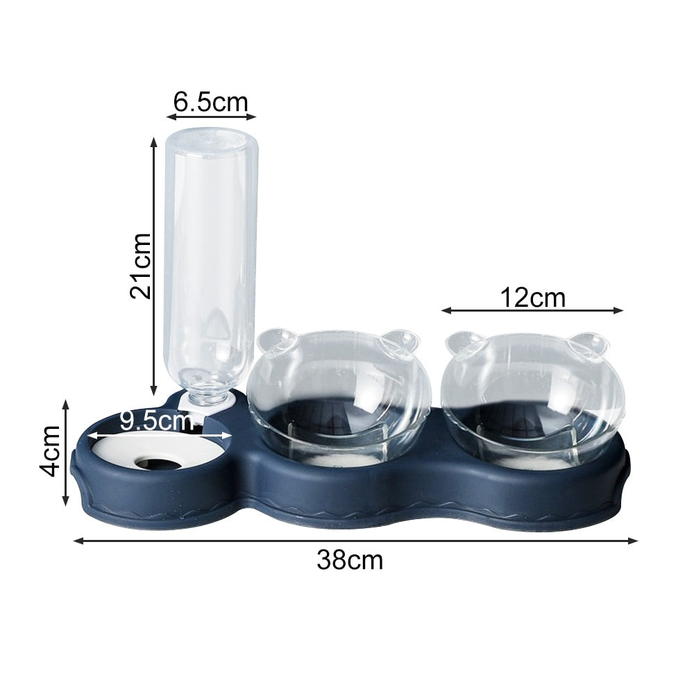Ein einzigartiger 3-in-1-Futternapf für Ihren liebsten Vierbeiner. Mit den beiden Kunststoffbehältern können Sie Trockenfutter und Nassfutter getrennt aufbewahren, super praktisch! Die Doppelbox ist um 360 Grad verstellbar. Diese Schüssel verhindert Erbrechen! Wie von professionellen Tierärzten bestätigt und wissenschaftlich bewiesen, ist das Essen aus einer um 15° höheren Schüssel die beste Fressposition. Ideal für Kätzchen, erwachsene Katzen und (kleine und mittelgroße) Hunde. Die schwimmende Scheibe hält das Wasser sauber. Der Inhalt des Wasserspenders (500 ml) reicht aus, damit Ihr Haustier mindestens 5-7 Tage lang trinken kann.
