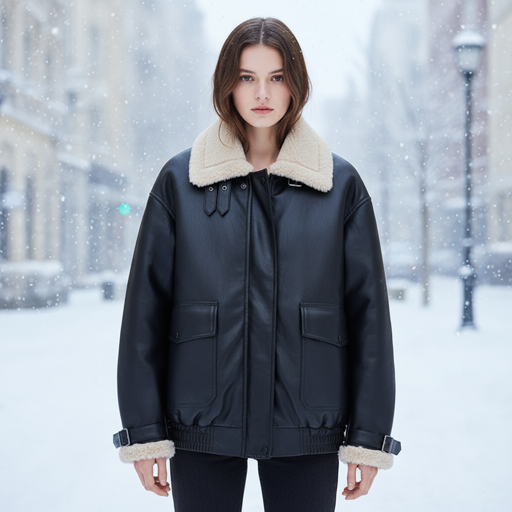 In winter, it can be difficult to find a style that is both warm and fashionable. This jacket not only keeps you warm with its lambswool lining, but also offers a casual fit and a modern design. Its combination of durable PU leather and a stylish look makes it the ideal choice for any occasion. This jacket pairs effortlessly with various outfits.