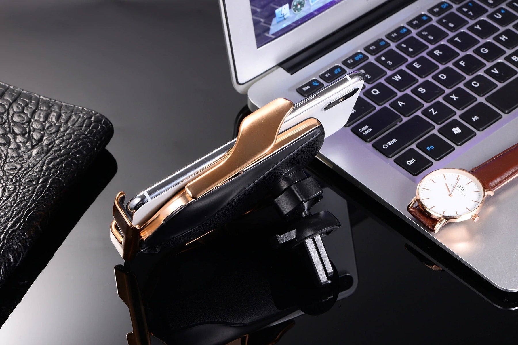 • 2-in-1 function: Serves as a phone holder and wireless charger – ideal for on the go.