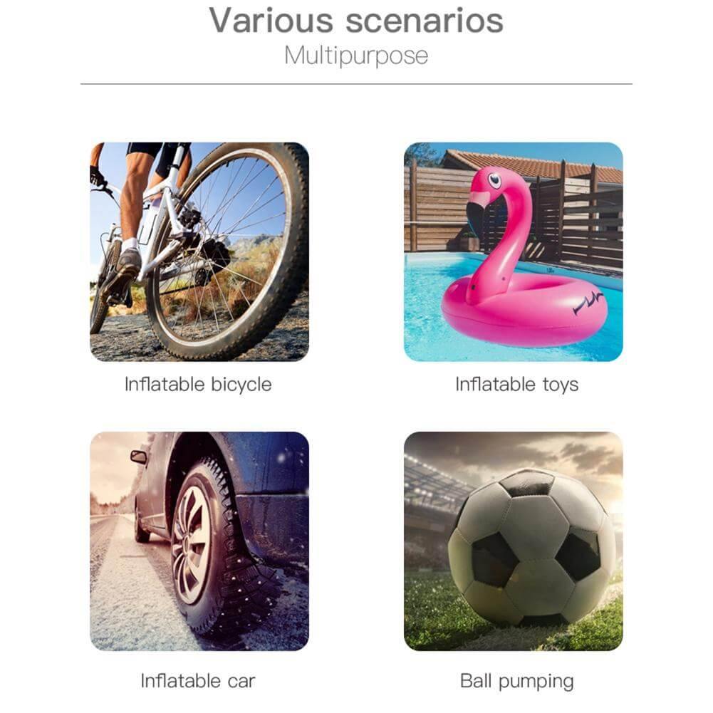Wireless: With a built-in battery, the pump can inflate up to 4 tires on a full charge and stays on standby for up to 365 days.