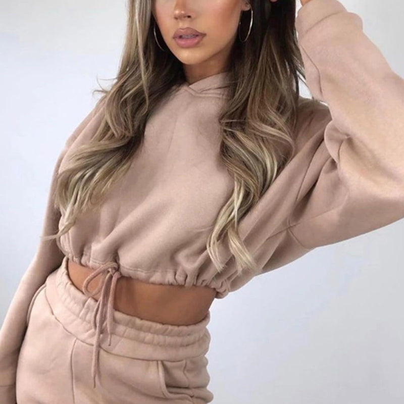 - Kapuzenpullover mit Kordelzug, der als Crop-Top oder normal getragen werden kann