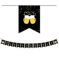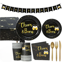 Mit dem CheersSet bereitest du deine Feier im Handumdrehen vor. Das Komplett-Set im Schwarz-Gold-Design bringt stilvolle Bier-Stimmung auf den Tisch und spart dir hinterher den Abwasch. Enthalten sind Teller in zwei Größen, Becher, Servietten, Besteck sowie eine passende Tischdecke und Banner. Ideal für Geburtstage, Vereinsabende oder eine Oktoberfest-Runde mit Freunden. Einfach auspacken, eindecken und losfeiern.