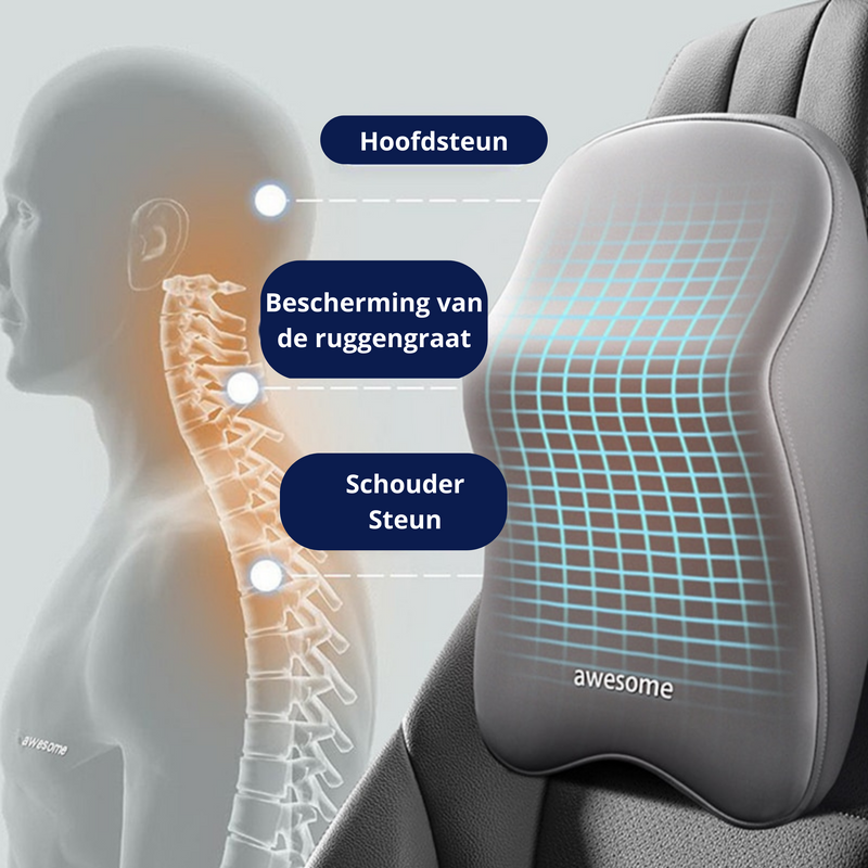 Dann besteht eine gute Chance, dass Sie manchmal unter Nacken-, Schulter- oder Rückenschmerzen leiden. Sehr nervig. Deshalb müssen Sie Ihrem Nacken, Ihren Schultern und/oder Ihrem Rücken zusätzliche Unterstützung bieten. Dies ist jetzt mit der fantastischer Autositz Support möglich. Ein ergonomisches Kissen für Nacken, Rücken oder beides. Das Kissen lindert sofort Beschwerden und sorgt dafür, dass Sie länger schmerzfrei fahren können.