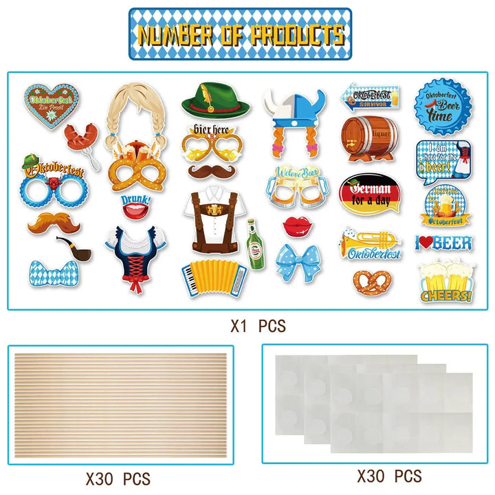 Foto-Requisiten Set im Oktoberfest-Design (30-teilig)- 1+1 Gratis – GaudiSpaß Oktoberfest 2025